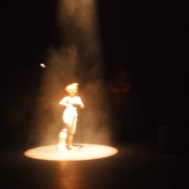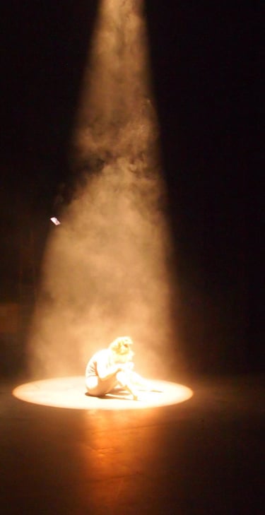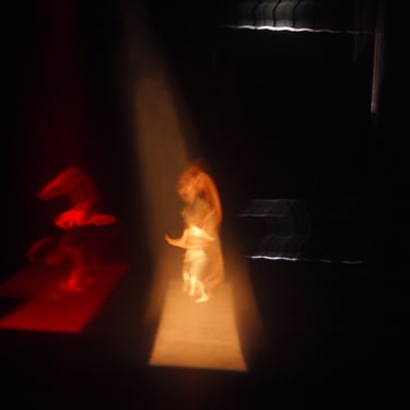 Dancers Anna Golding and Crystal Zilwood, worked with choreographic phrases and themes which were initially developed in the studio and around the grounds of the Northcott Theatre, Exeter.These phrases informed the ground substance for further investigation within the theatre. Boundaries were created with columns of light, edges to be passed through or contained within. Colours played with and atmospheres explored.